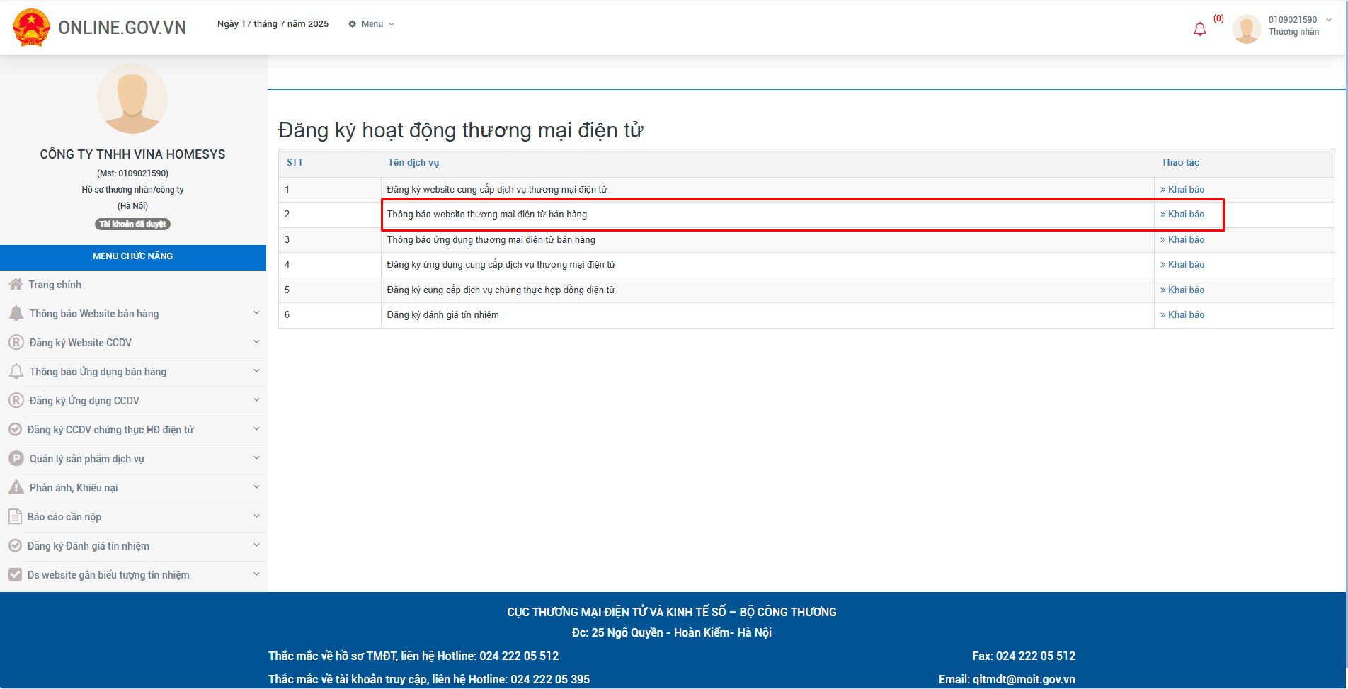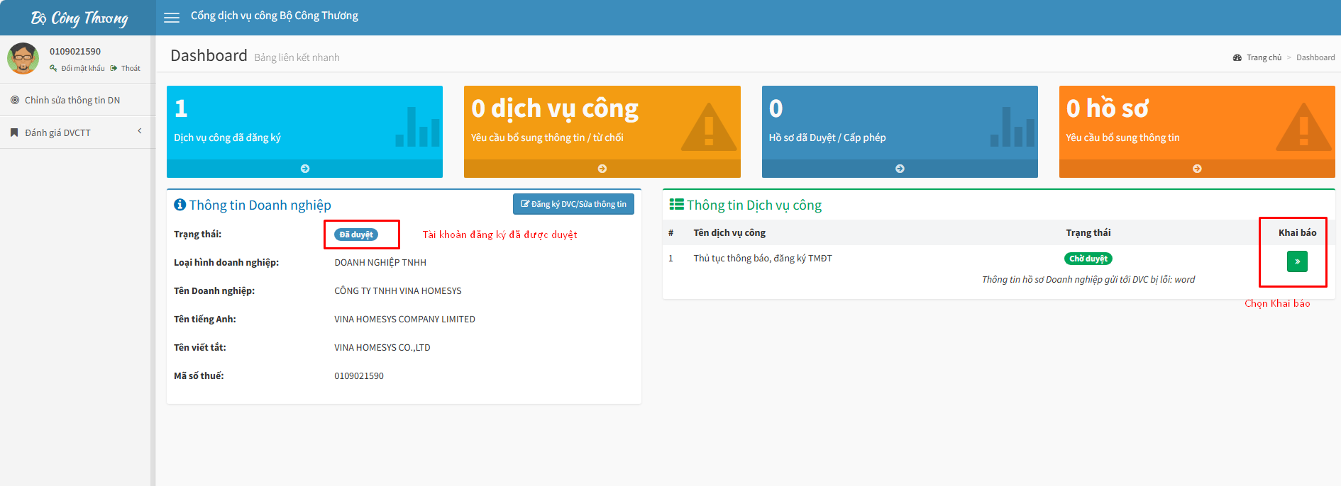 - Sau khi tài khoản được duyệt → Chọn “Khai báo”