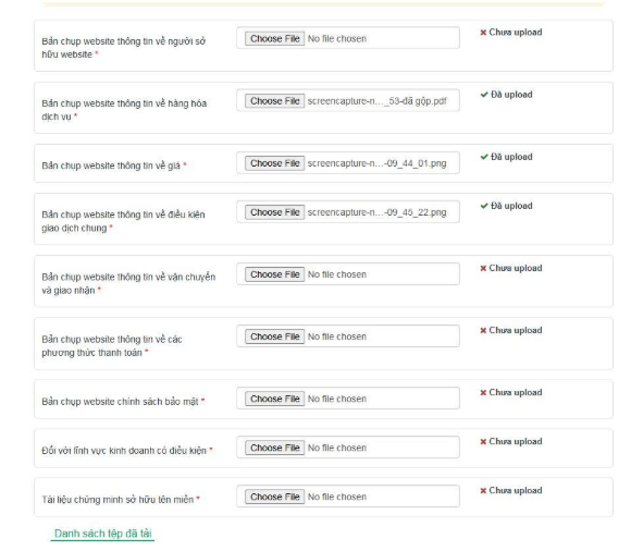 - Tải lên các tài liệu đã chuẩn bị ở Mục II